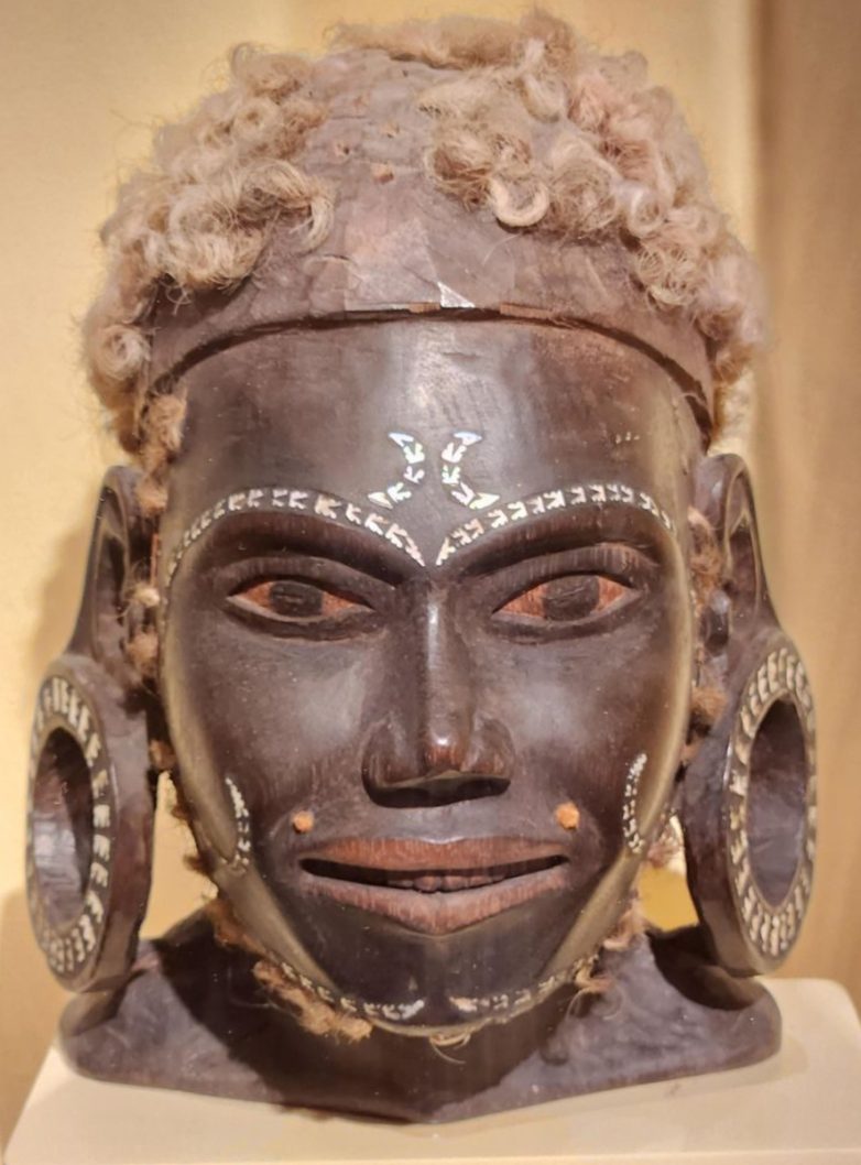 Бюст сделан из дерева с использованием человеческих волос и пигментов, а также инкрустированный раковиной морского ушка. Новая Джорджия, Cоломоновы Острова, XIX век