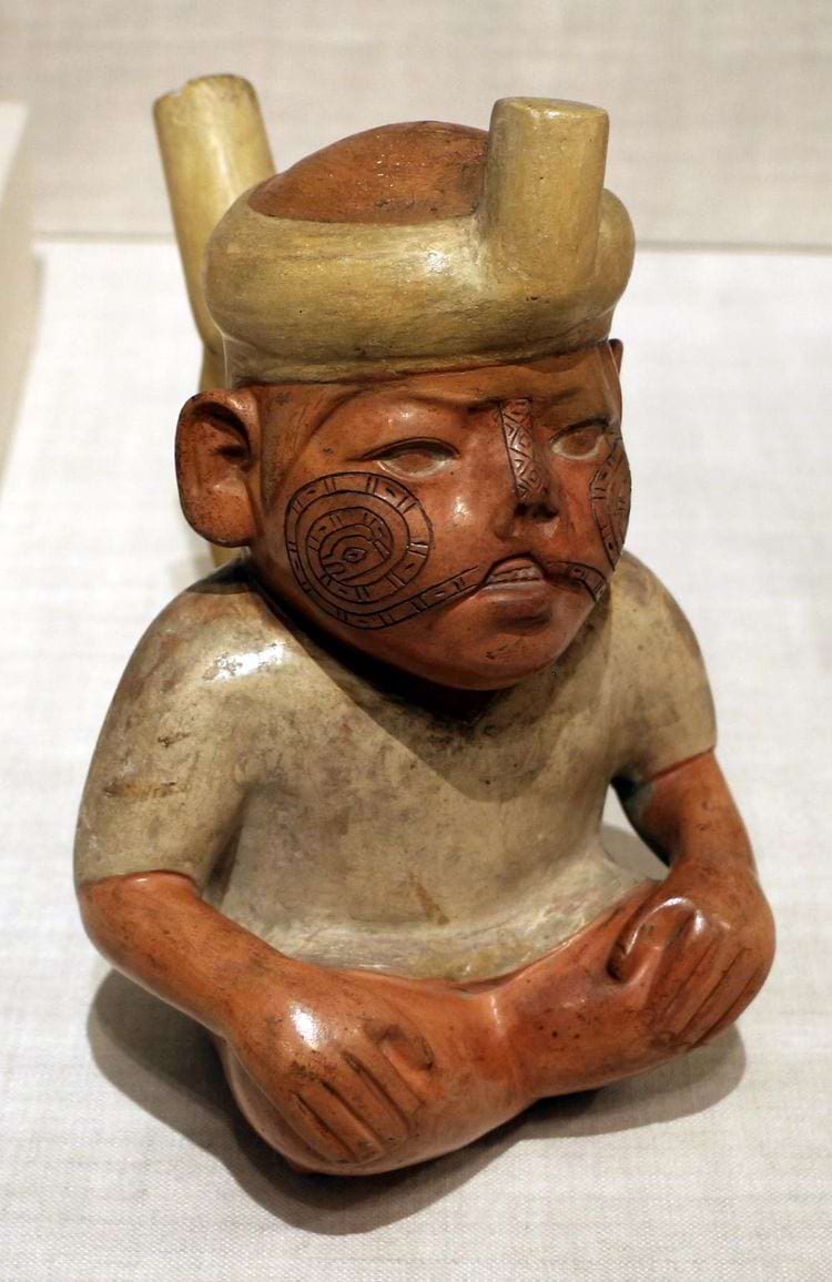 Портретный сосуд Моче с изображением мужчины с заячьей губой и татуировками. 100 г. до н. э. – 500 г. н. э., из Перу, в настоящее время хранится в Институте искусств Чикаго