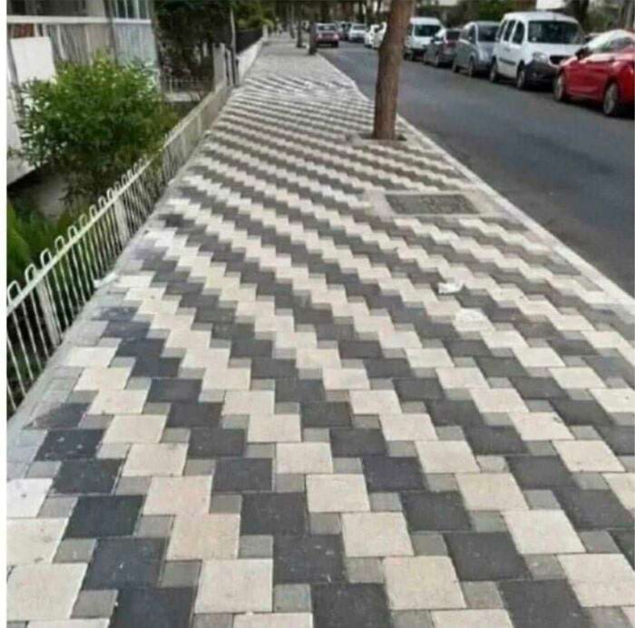 Эта раскладка тротуарного кирпича идеально подходит для потери равновесия или спотыкания