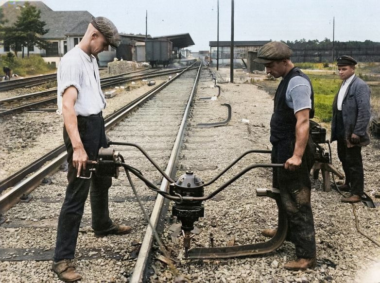 Шапка-кораблик из газеты — это был тренд советских пляжей. Быстро, удобно, стильно… по-своему. Но вот носить её в ансамбле с костюмом и галстуком — это уже уровень высокой итальянской моды. Электрификация железной дороги. Берлин, 1910-е.