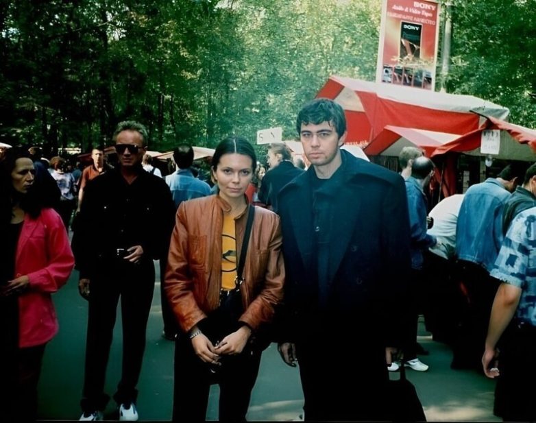 Сергей Бодров со своей поклонницей, предположительно на «Горбушке» (девушка на актрису похожа и слева идёт Стинг )))