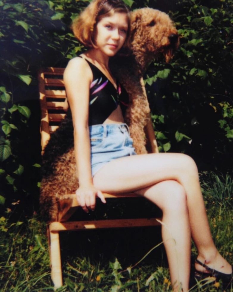 Андрей Губин с поклонницей Машей. Москва, Строгино, 1999 год.