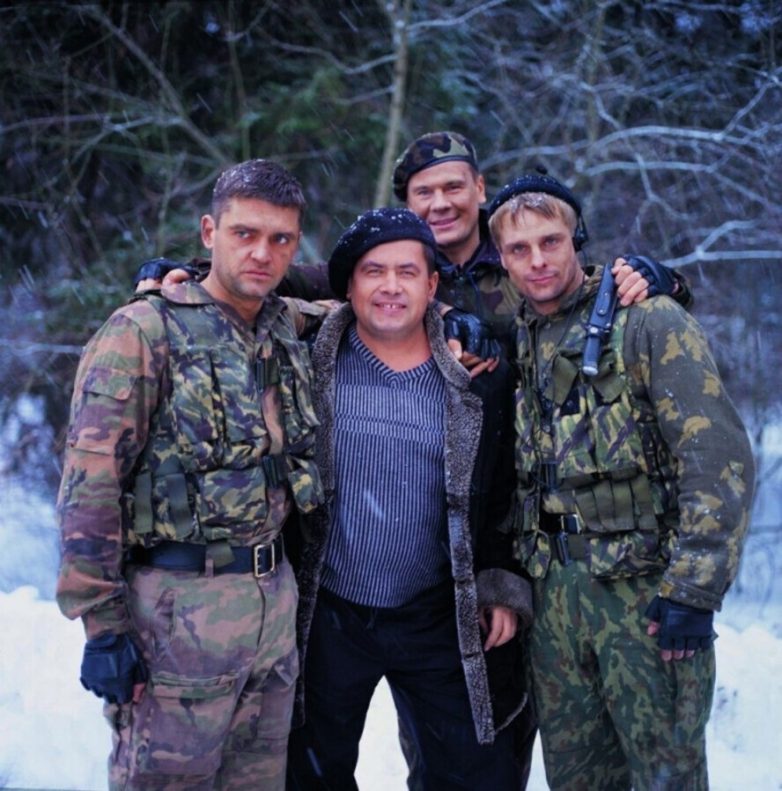 Давай за… Николай Росторгуев с актерами сериала «Спецназ», 2002 г. Игорь Лифанов, Владислав Галкин и Александр Носик.