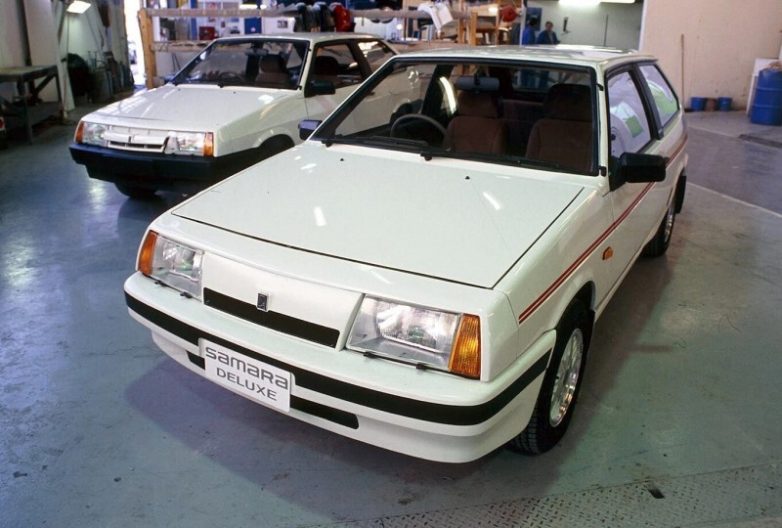 Праворульные Lada Samara в одном из автосалонов Австралии, 1988 год