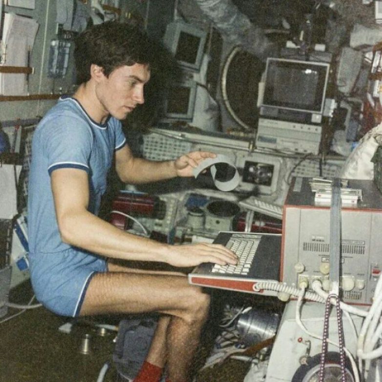 Советский космонавт Сергей Крикалев на станции во время распада Советского Союза в 1991 году.