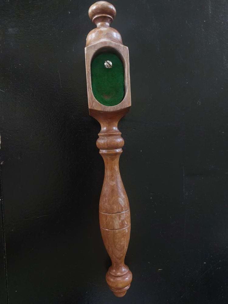 Вопрос: «Резная деревянная палочка с углублением, зеленым фетром и шурупом внутри, длина 29 см. Мой парень, по-видимому, хранил эту вещь годами, а потом забыл, что это такое. Я понятия не имею, что это такое»
