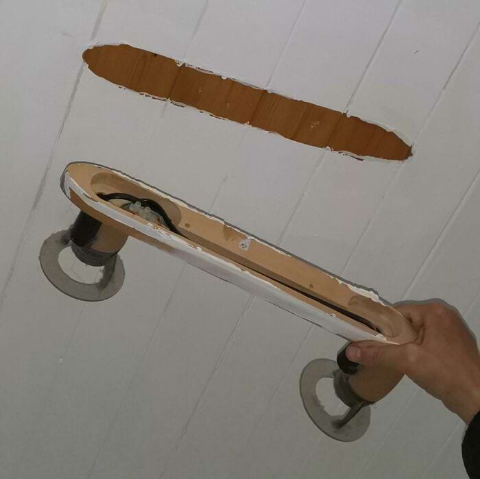 Либо это какие-то супер современные беспроводные лампочки, либо владелец жилья просто приклеил светильник к потолку. Кажется, это второе.