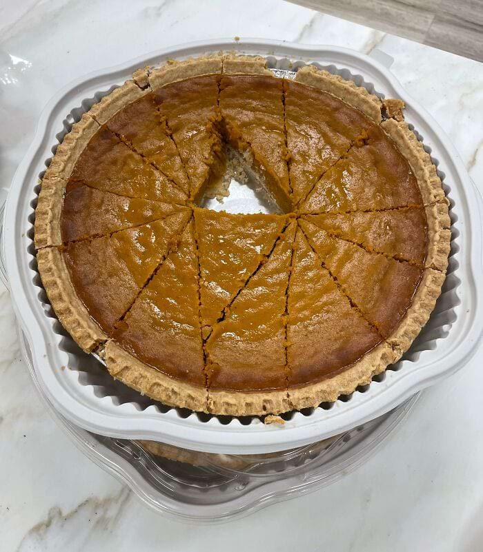«Принес этот пирог на офисный обед. Мой коллега разрезал его вот так и взял кусок из середины»