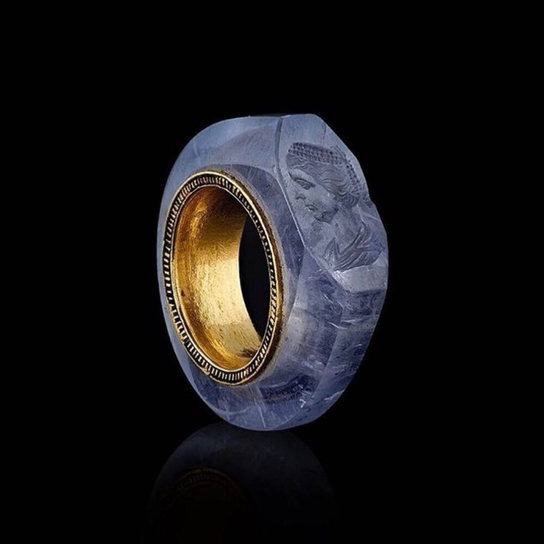 10. Сапфировое кольцо Калигулы, возраст которого 2000 лет. Портрет принадлежит четвертой и последней жене великого понтифика — Цезонии