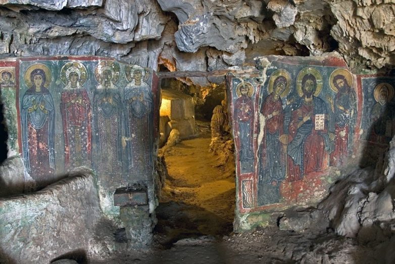 26. Пещера Святой Софии на острове Китира, Греция. Говорят, здесь нашли её тело. В 1875 году жители деревни Милопотамос воздвигли часовню в её честь, здесь есть несколько икон и прекрасные фрески (датируемые XIII веком)