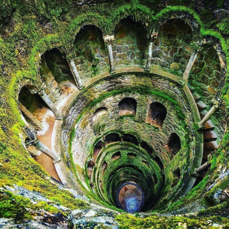 11. «Колодец посвящения» глубиной 27 метров в Кинта да Регалейра, недалеко от города Синтра, Португалия. Говорят, колодец служил для религиозных церемоний масонского братства