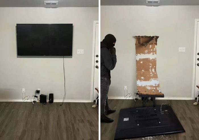 «Не могли бы вы помочь мне разыграть моего друга, сделав вид, будто телевизор, который он только что установил, упал на пол?»