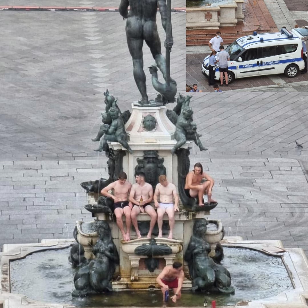 Ирландские туристы в итальянской Болонье оштрафованы на 500 евро каждый после того, как разделись до нижнего белья и взобрались на фонтан Нептуна