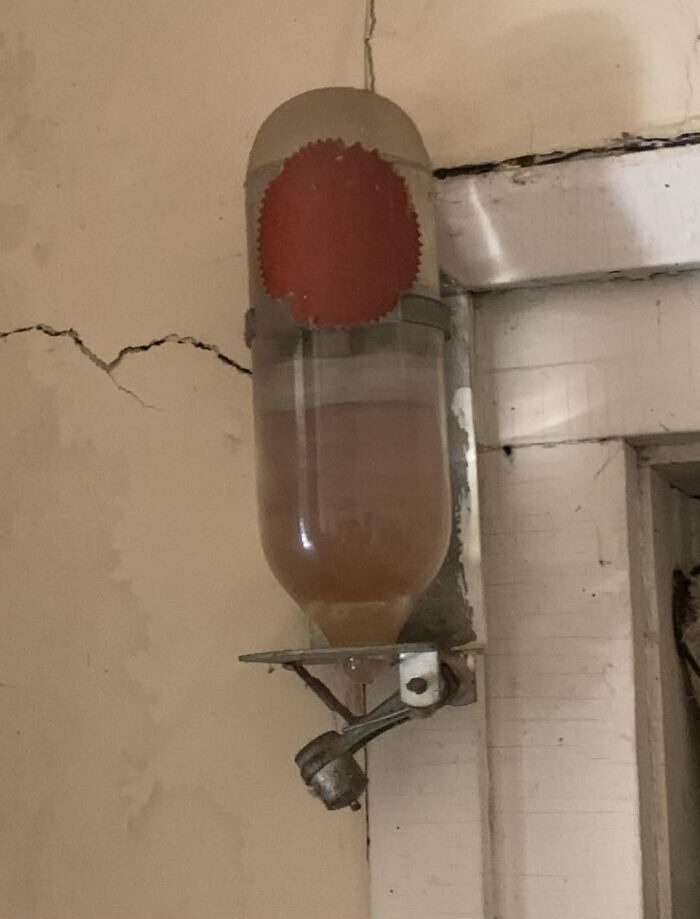 Стеклянный огнетушитель, наполненный четырёххлористым углеродом. Очень опасно.