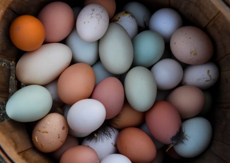 Куры разных пород несут яйца разного цвета. Разница в цвете связана с тем, что во время формирования скорлупы у коричневых яиц на неё откладывается пигмент протопорфирин, связанный с гемоглобином. Белые яйца вообще не содержат окрашивающих веществ, поэтому их скорлупа остаётся чисто белой. Однако, несмотря на визуальные отличия, вкус, питательность и состав яйца одинаковы.
