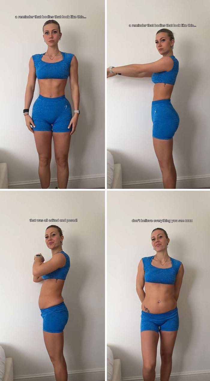 Тела бывают разных форм и размеров, и пока люди здоровы и счастливы, им не следует ничего в себе менять, даже если тенденции в социальных сетях говорят им об обратном. Некоторые женщины недавно решили противостоять потоку «идеальных» тел (как будто они существуют в реальной жизни) и тенденции людей, пытающихся выглядеть как можно более худыми, будь то принятие определенной позы или редактирование своих снимков.