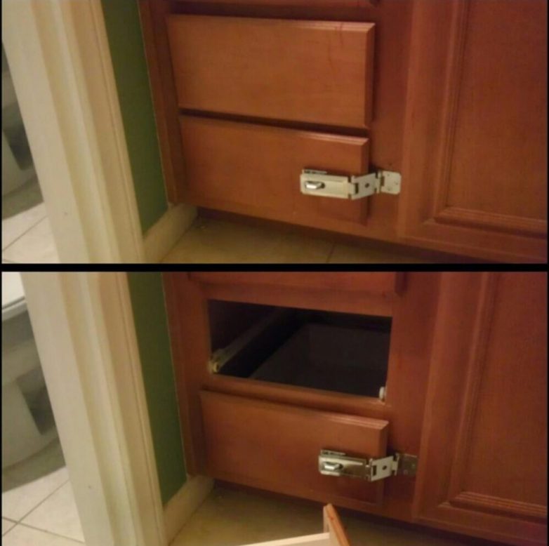 Замок вскрывать-слишком долго. Достаточно просто вытащить верхнюю полку