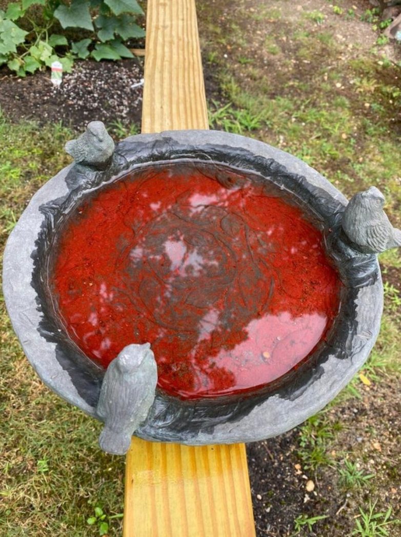 Отмыть емкость не получается, хорошо, что птицам все равно на цвет воды