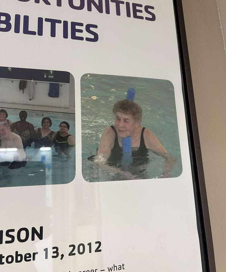 Нет, бабулю никто не протыкал, она просто использует нудл для плавания в бассейне, а остальное уже сделала перспектива