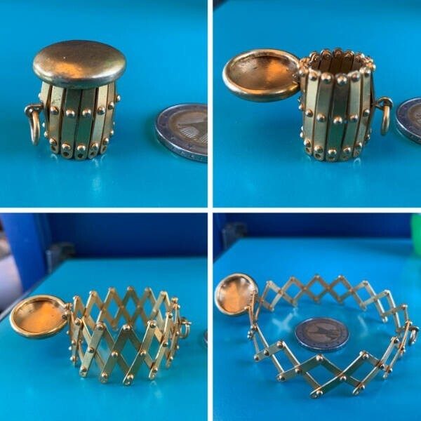 1. «Латунь, 10 x 7,5 сантиметра, петля открывается под углом 90°. Часть поменьше ребристая с внутренней стороны»
