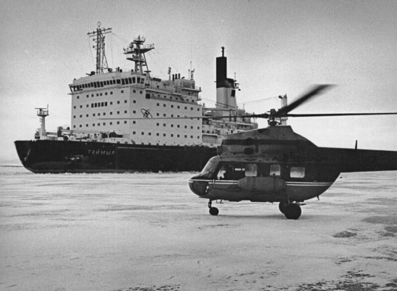 Ми-2 на фоне атомного ледокола «Таймыр».