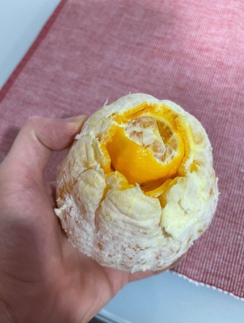 Апельсин мутант. Внутри находятся маленький апельсинчик, у которого тоже есть шкурка