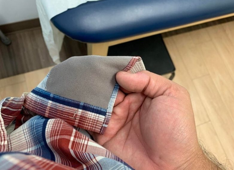На внутренней стороне рубашки подшит кусочек специальной ткани для того, чтобы вытирать очки