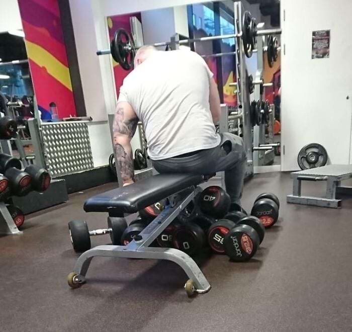 «Люди, которые просто оставляют свои вещи на тренажере и исчезают на 15 минут! Мне нужно было всего 10 минут, я мог бы уже закончить»