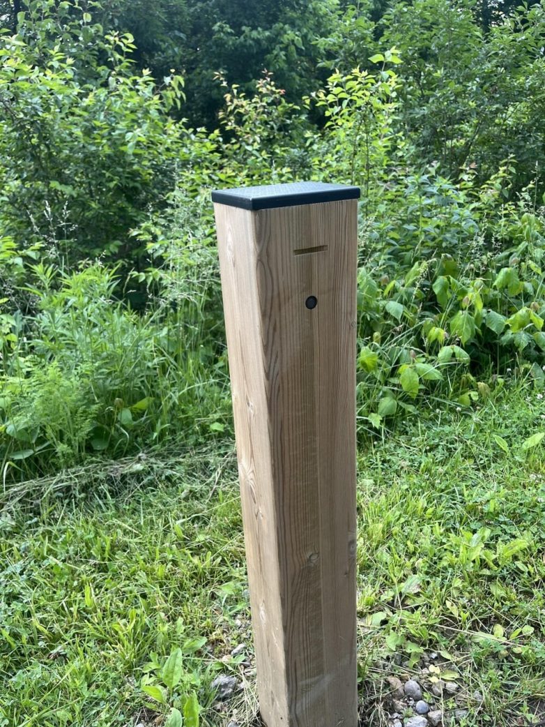 7. Деревянный высокий столбик на велосипедной дорожке