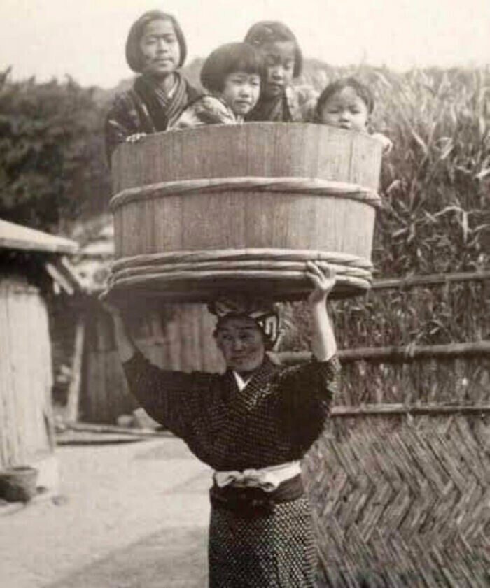 Японка несёт детей, 1900-е