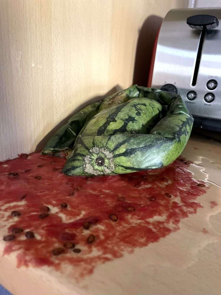 13. «Вернувшись домой после выходных, я обнаружил, что мой арбуз взорвался на кухонном столе»