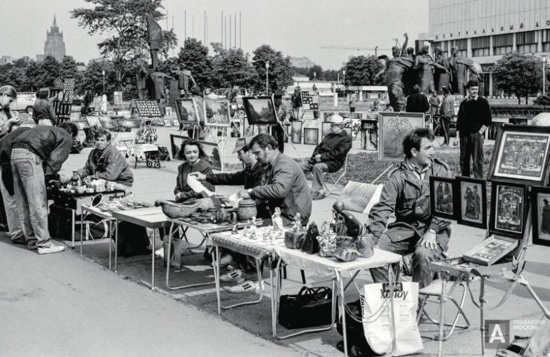 Рынок декоративно-прикладного искусства у Центрального дома художника в Москве, май 1993 г.