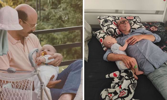 «Мой ныне покойный отец держит меня на руках, когда мне было 8 месяцев, в 1991 году, и спит с моим сыном того же возраста в 2021 году»