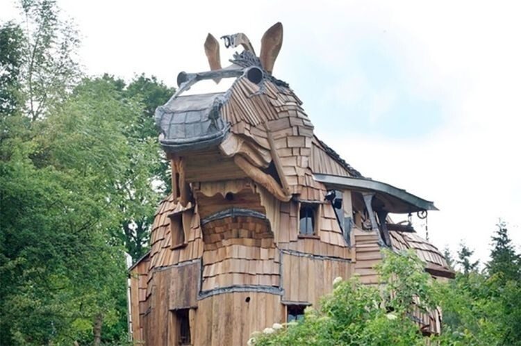 Этот отель воплотил в себе все самые яркие детские фантазии. Здесь есть комната-Луна, пещера троллей и даже двухэтажный троянский конь с подъёмным мостом. Голова коня двигается с помощью рычагов, создавая ощущение, что вы внутри гигантской игрушки.