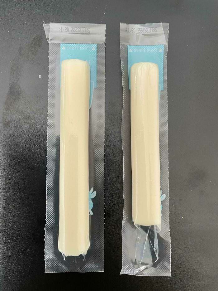 «Сырные палочки, которые я покупаю каждую неделю. Слева — старые, справа — новые»