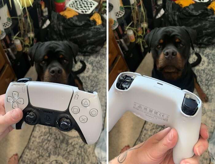 «Я забыл убрать свой контроллер, пока принимал душ, и его нашёл наш новый щенок, у которого проблемы с жеванием»