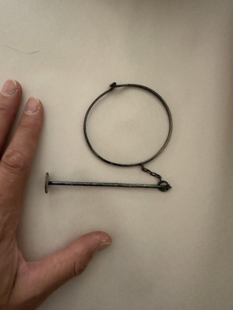 7. Серебряное кольцо, соединённое цепочкой со штырём