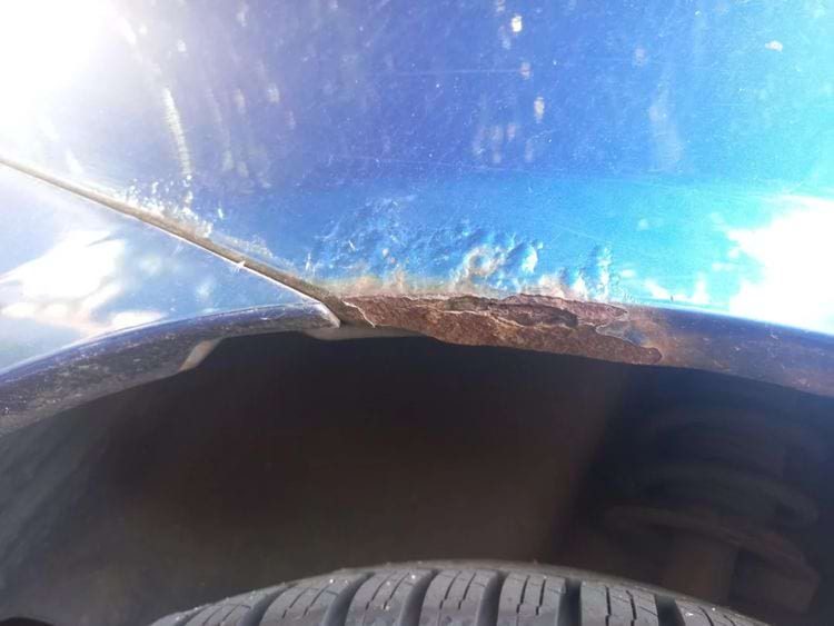 На самом деле вы смотрите на ржавчину на крыле синего автомобиля