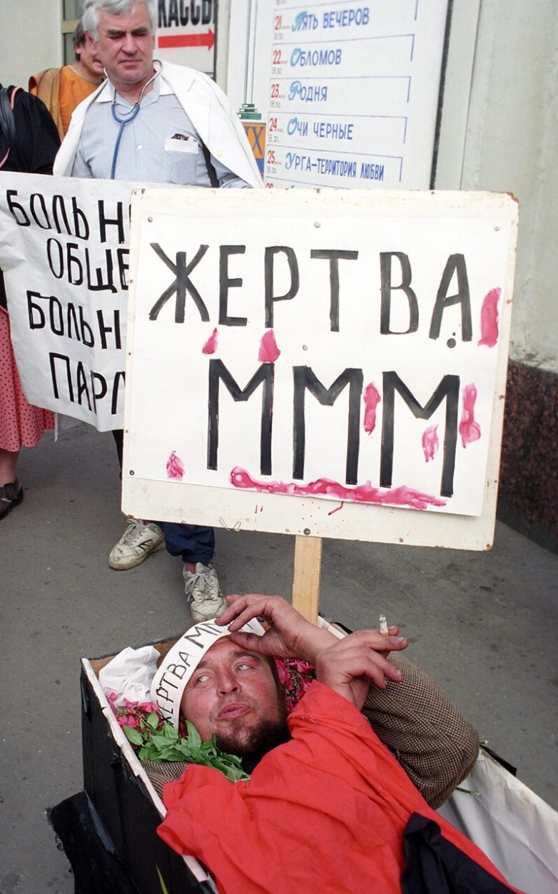 Члены общества «Возрождение» на акции в поддержку обманутых вкладчиков АО «МММ» на Арбатской площади, 1995 год.