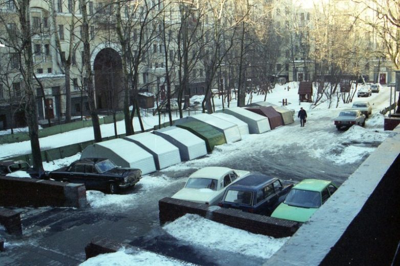 Гаражи типа «ракушка» в одном из дворов, 1999 год, Москва