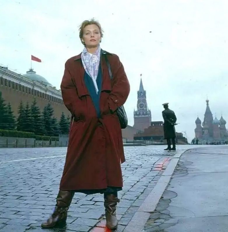 Мишель Пфайфер на Красной площади в Москве. 1990 г