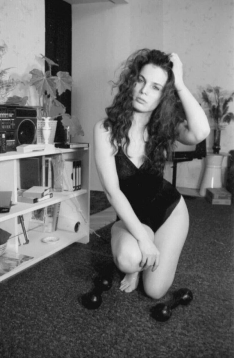 Сотрудница информационно-вычислительного центра Министерства нефтяной и газовой промышленности СССР Н. Дашевская занимается дома фитнесом, 1988 г.