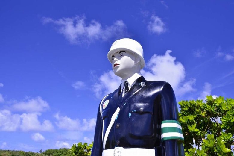 На острове Миякодзима фигурки полицейских снижают аварийность с 1990-х. Сначала их считали жуткими, но теперь продают даже печенье с их изображением.