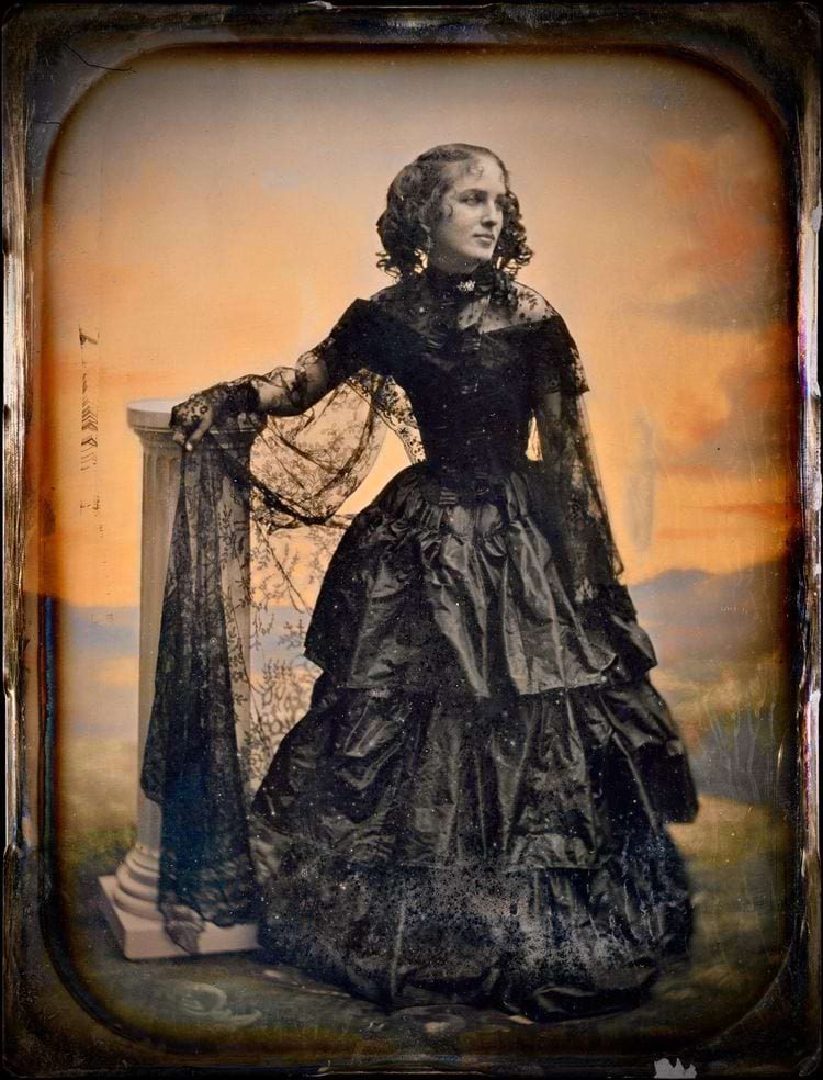 8. Фотография американской женщины в черном платье из тафты и кружевной шали, 1847–1853 гг.