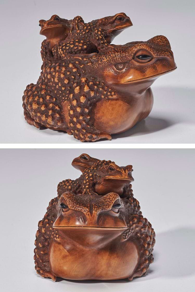 1. Резная деревянная скульптура жаб, период Эдо (XIX век)