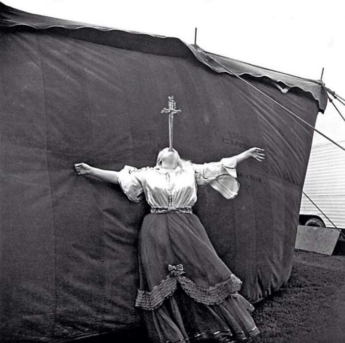 «Глотатель шпаг на карнавале». Диана Арбус. Мэриленд, 1970 год