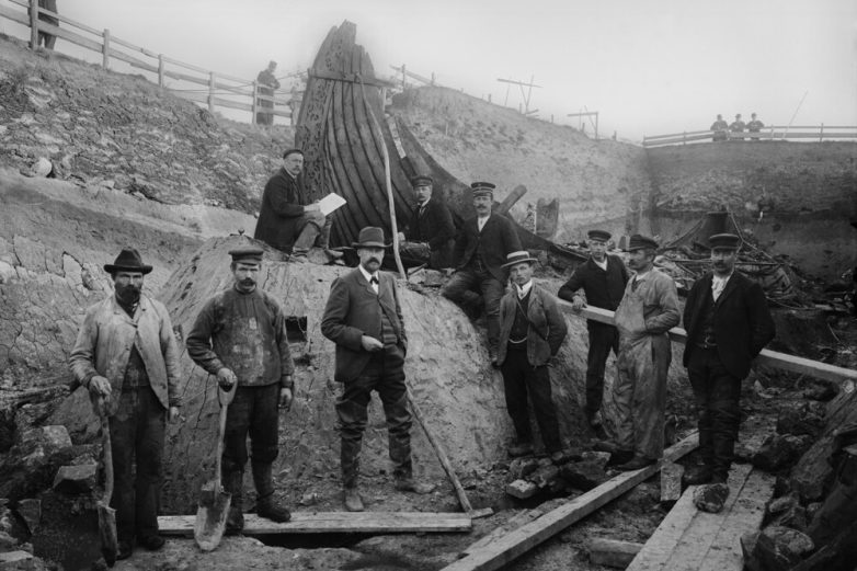 Дубовый корабль викингов (драккар) был обнаружен в 1904 году близ Тёнсберга в норвежской губернии Вестфолл. В ладье покоились останки двух женщин высокого социального положения. Также были найдены фрагменты восточных шёлковых тканей, хорошо сохранившаяся телега и кости павлина.