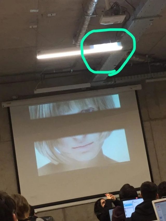 Этот фотосборник — наглядное пособие того, как делать не надо. Здесь проекторы, установленные перед лампой, настенная плитка с «волосяным» эффектом и настенный телефон для дяди Стёпы… или соседей сверху.