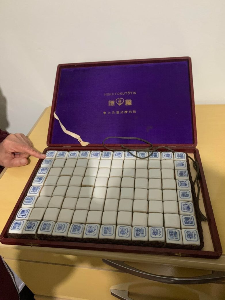 1. Керамические кубики в коробке, соединённые между собой в полотно, часть которых обозначена иероглифами