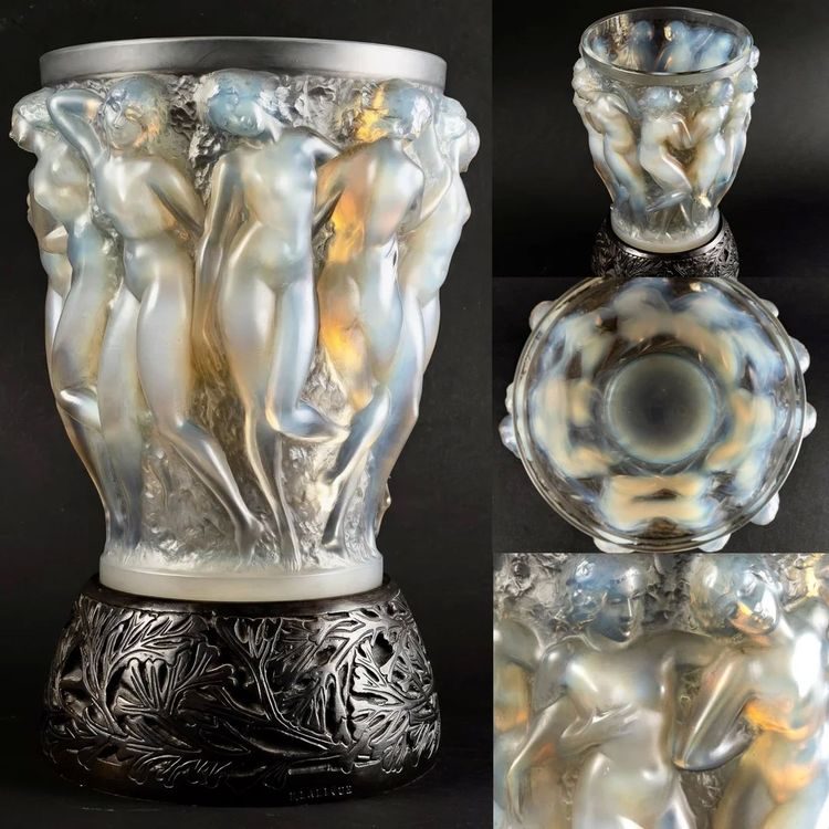 11. Ваза «Вакханки» работы Рене Лалика. Опаловое стекло со свинцовой патиной на бронзовом основании, Франция. Начало XX века